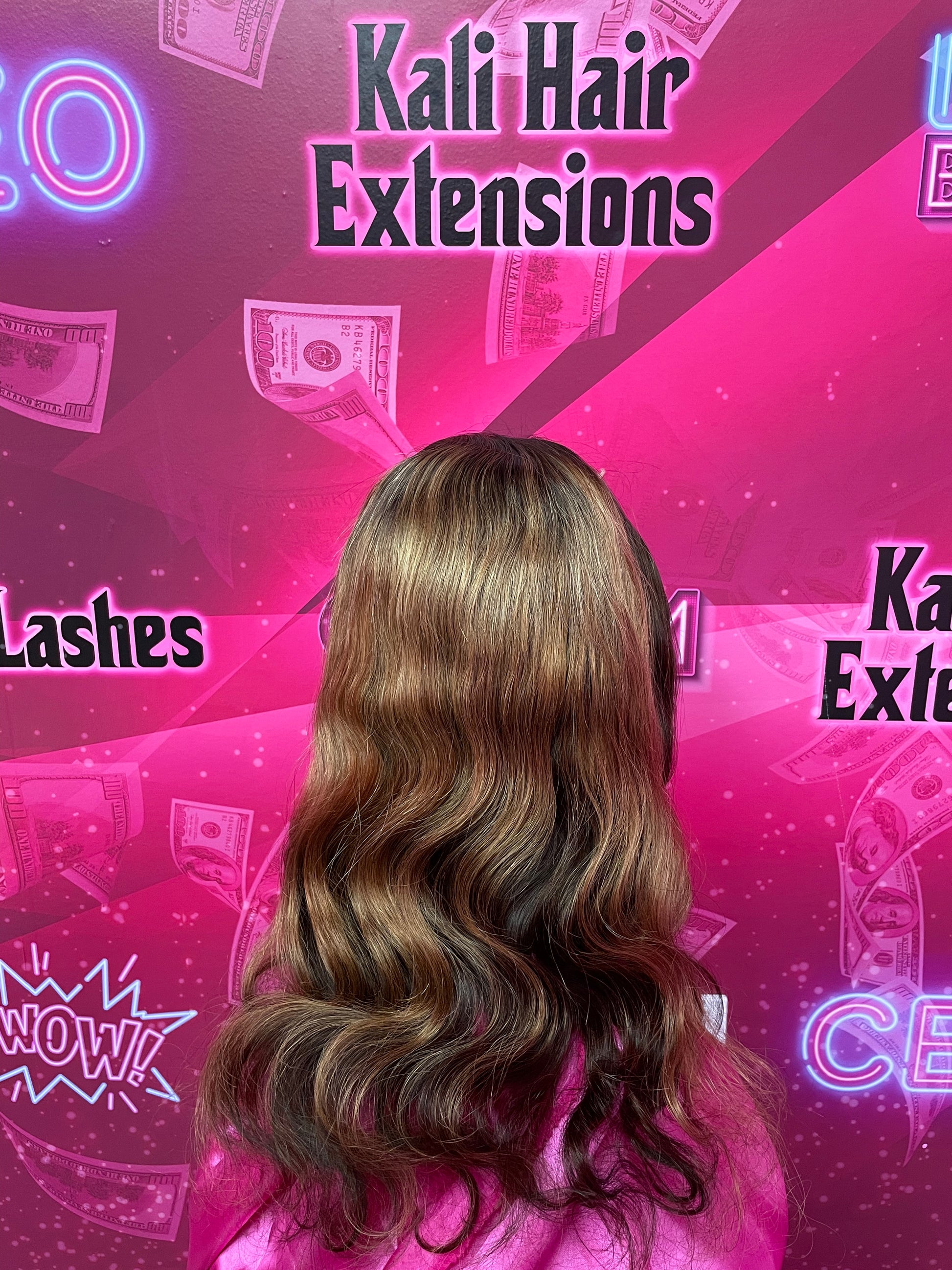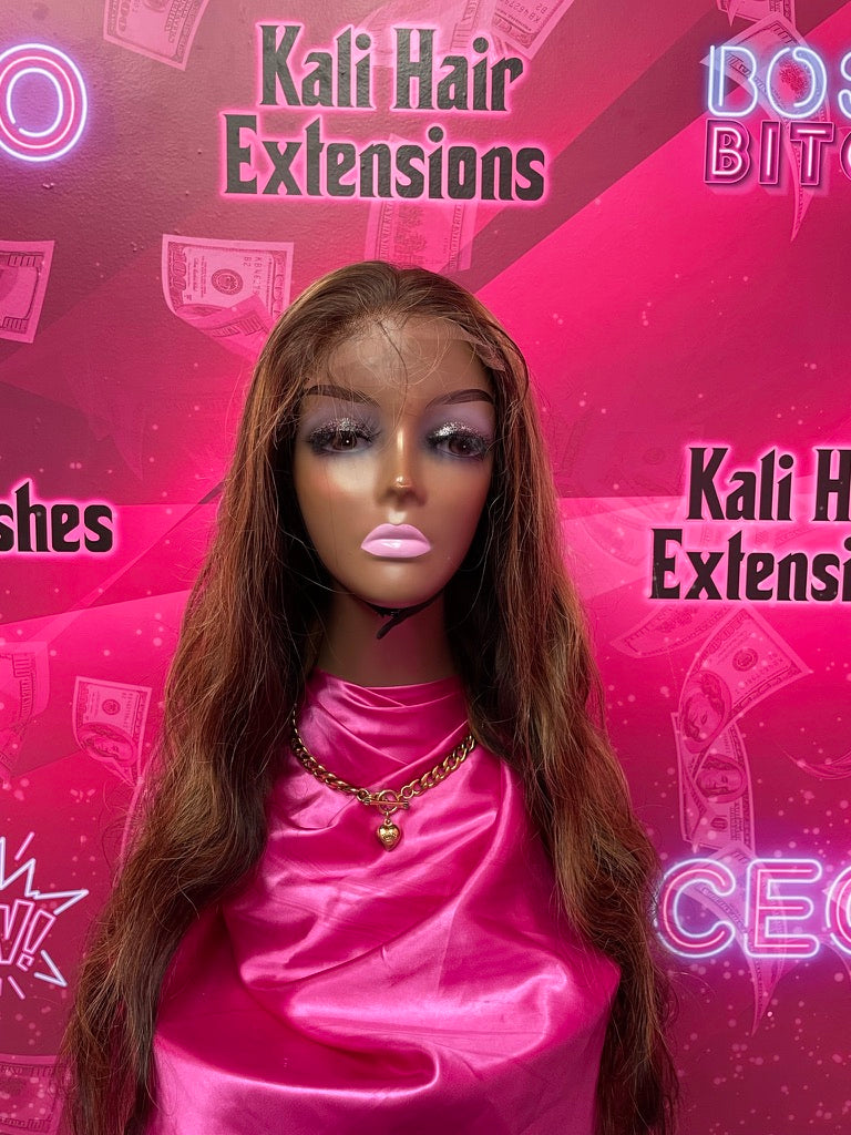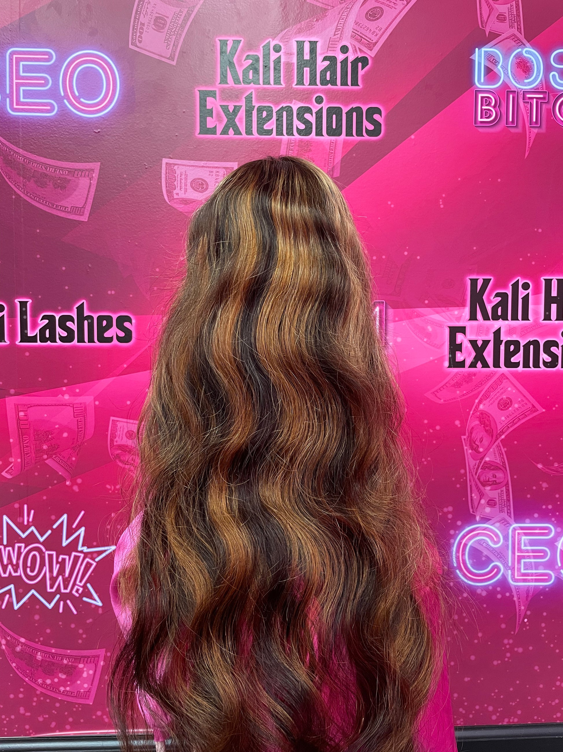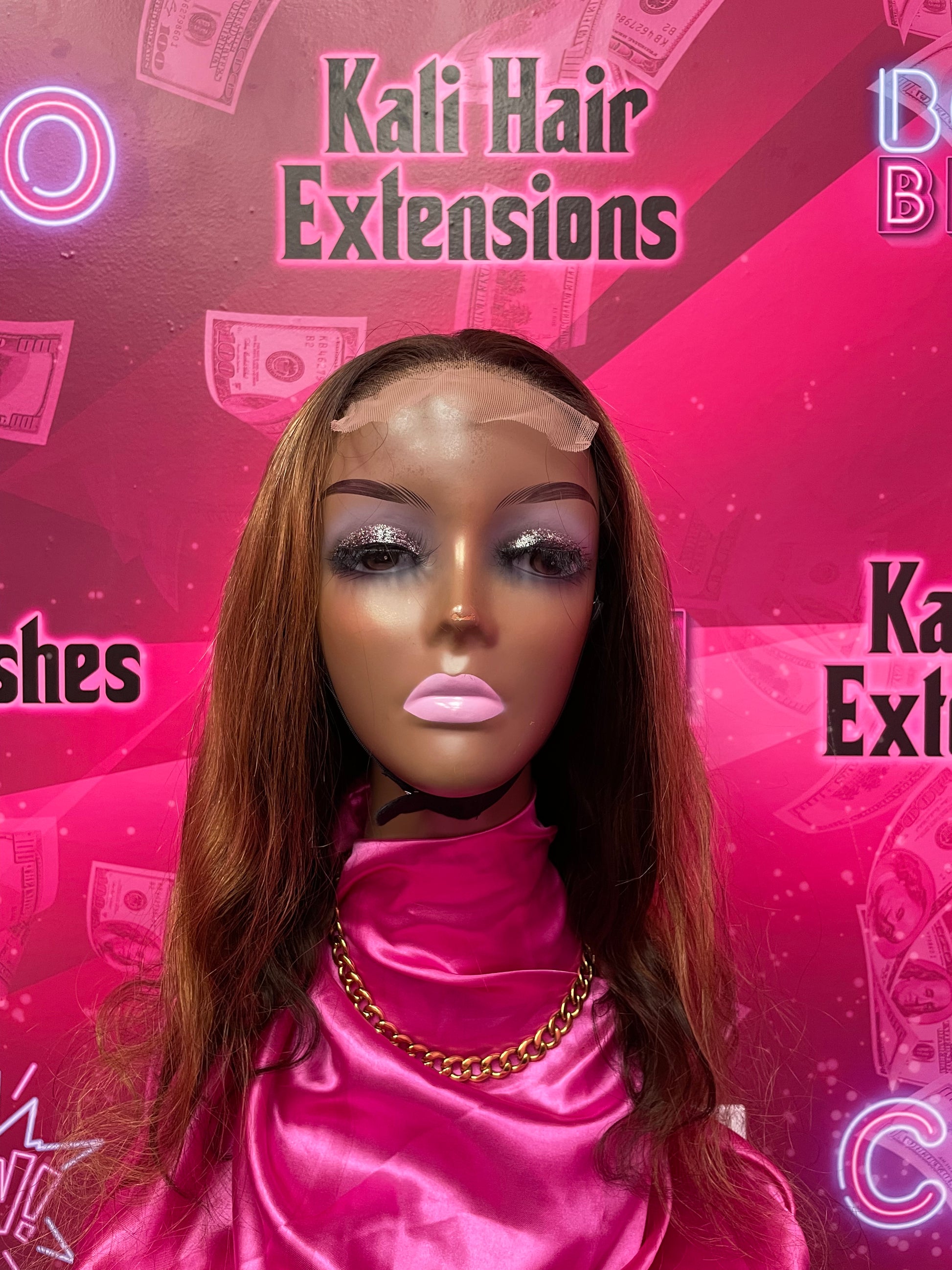 "Kali" Transparent lace closure wig brown & honey blonde highlights